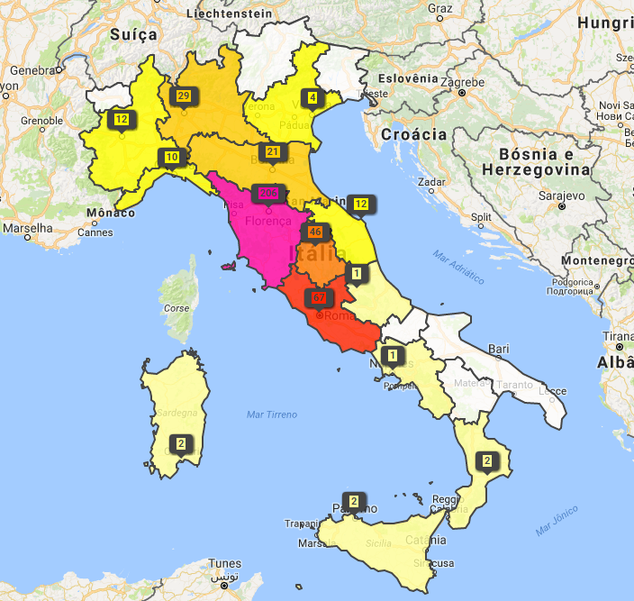 A forma “Buoncompagni” tem certa concentração entre as cidades de Ancona e Pésaro, na região das Marcas.